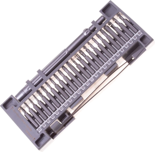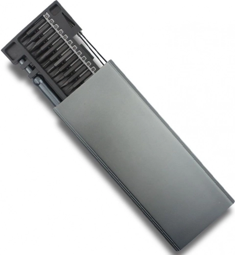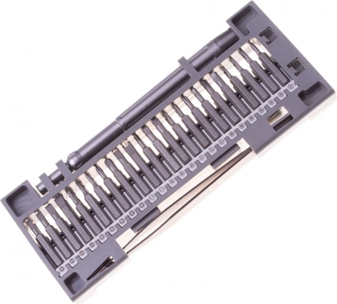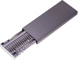 Zestaw śrubokrętów zapakowany w praktyczny organizer z zamknięciem, z wkrętakami umieszczonymi po obu stronach. Zestaw składa się z 48 sztuk wykonanych z wysokiej jakości stali. Zawiera obszerny zestaw bitów, które są umieszczone w praktycznej plastikowej wkładce.