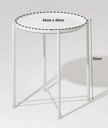 Praktyczny stolik pomocniczy sprawdzi się podczas przerwy na kawę w salonie lub w ogrodzie. Minimalistyczne wykonanie pasuje do nowoczesnych wnętrz w stylu loft. Okrągły metalowy stolik jest idealny do salonu, sypialni, łazienki, a także na taras, balkon lub do ogrodu.