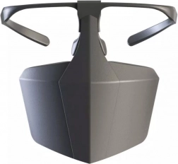 Maska w kształcie okularów zapewnia barierę ochronną przed bakteriami i wirusami. Jest elegancka, nie utrudnia oddychania i nie zasłania oczu. Konstrukcją przypomina czapki z daszkiem.