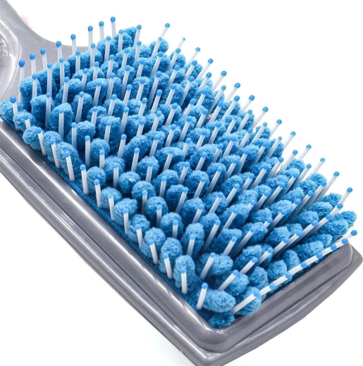 Szczotka z mikrowłóknami wchłania pierwszą wilgoć podczas czesania i znacząco skraca czas suszenia włosów.