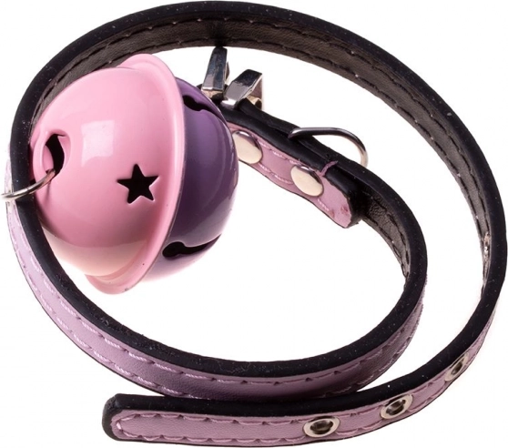 Stylowa czarna obroża z różowym dzwoneczkiem i metalicznymi elementami nadaje Twojemu pupilowi nowoczesny wygląd.