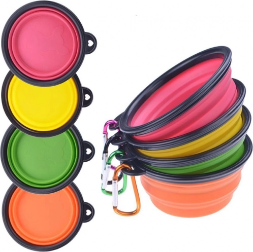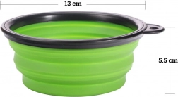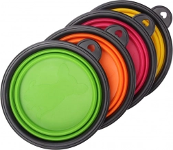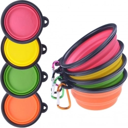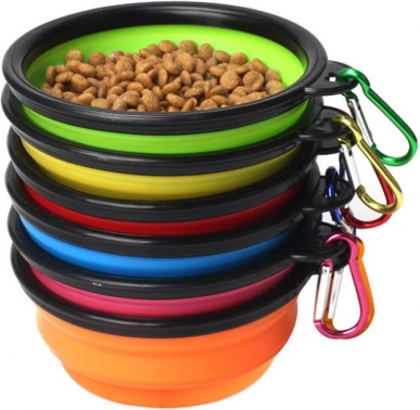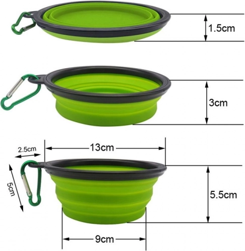 Składana silikonowa miska turystyczna jest świetna dla aktywnych osób podróżujących z psami. Wykonana z wysokiej jakości, żaroodpornego silikonu. Po złożeniu zajmuje bardzo mało miejsca. Miska jest dostarczana z karabińczykiem, dzięki czemu można ją przypiąć do szlufki spodni lub plecaka.