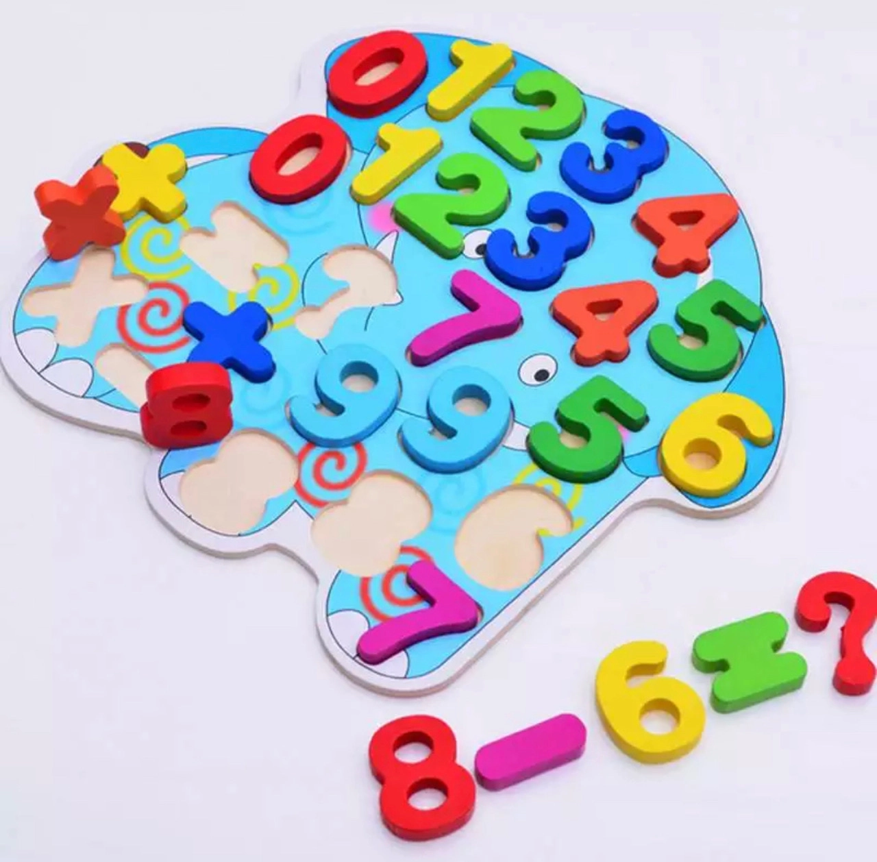 Ta drewniana układanka liczbowa w kształcie słonia to świetna pomoc przy pierwszym poznawaniu liczb i prostych zadań. Kolorowe, dobrze dopasowane elementy z liczbami 0–9 oraz symbolami +, −, × wkłada się w wyfrezowane otwory, co wzmacnia koncentrację i precyzję.