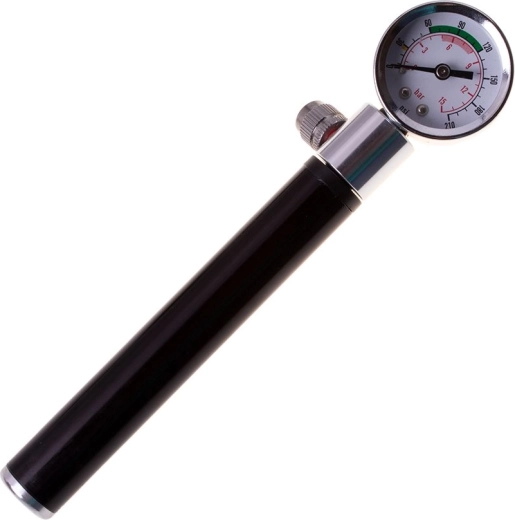 - Pompka z manometrem – solidna, wykonana z metalu. W przeciwieństwie do ostatnio modnych nabojów z dwutlenkiem węgla można jej używać wielokrotnie.