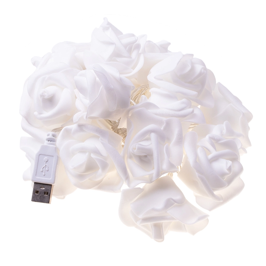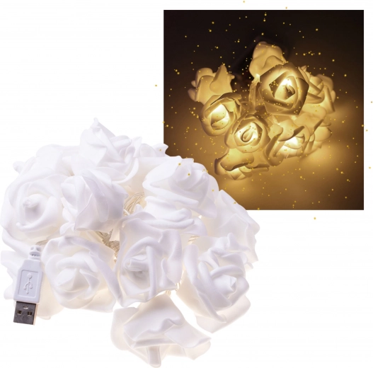 Precyzyjnie wykonane róże o średnicy 4,5 cm prezentują się subtelnie i elegancko, więc nie dominują wnętrza, lecz dodają mu charakteru i domowego ciepła. Łańcuch to świetny wybór do pokoju dziecięcego, sypialni oraz jako dekoracja sezonowa – stworzy przytulne świetlne tło na każdy dzień.