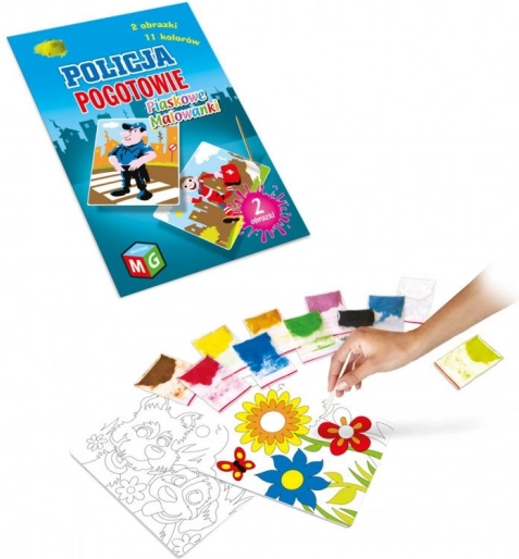 Zabawny kolorowy piasek działa relaksująco i potrafi zainteresować nawet najbardziej żywiołowe dzieci. Malowanie piaskiem to zabawa polegająca na odkrywaniu poszczególnych elementów obrazka w celu odsłonięcia powierzchni wybranego fragmentu. Odsłonięte części posypuje się piaskiem w kolorze zgodnym z wzorem, tworząc piękną ilustrację.