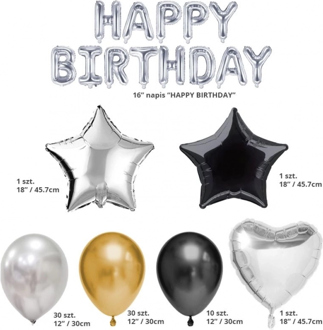 Zestaw urodzinowych balonów nada przyjęciu wyjątkową atmosferę i stworzy niezapomniane wrażenie dla wszystkich uczestników. Idealny na imprezy w domu i na zewnątrz!