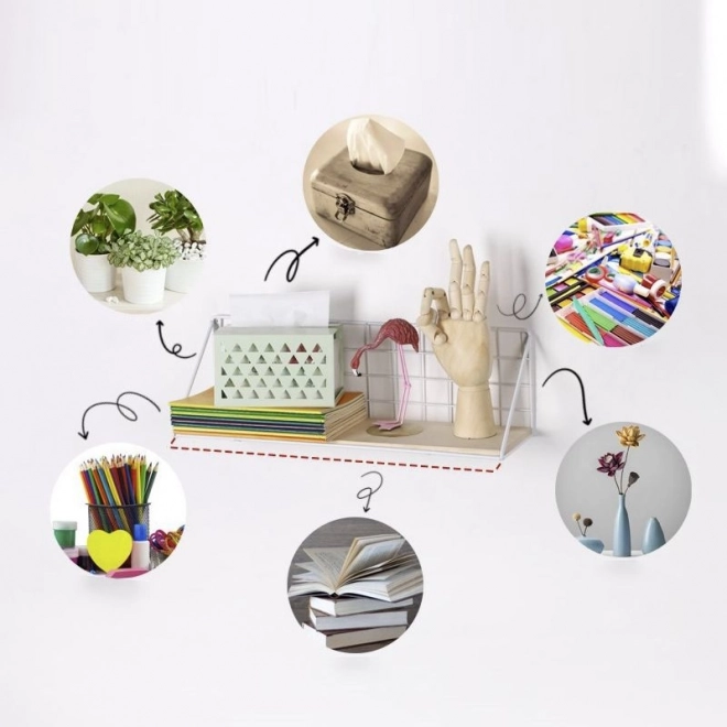 Minimalistyczna konstrukcja wpasuje się w niemal każde wnętrze i pomoże efektywnie wykorzystać przestrzeń pionową. Montaż jest szybki i prosty, więc w krótkiej chwili zyskasz praktyczne i estetyczne miejsce do przechowywania.