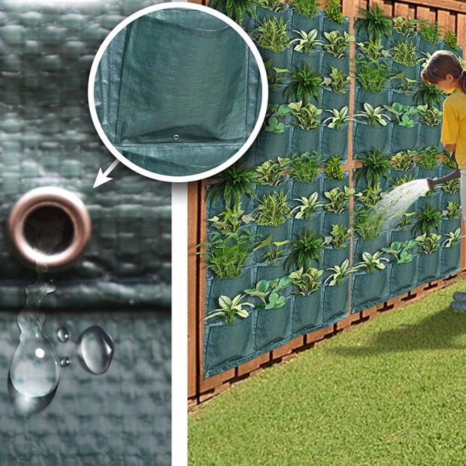 Ścienna torba do sadzenia umożliwia nasadzanie w każdej kieszeni. Wnętrze kieszeni łatwo wypełnisz ziemią i umieścisz w niej roślinę. Przeznaczona do roślin ozdobnych, truskawek lub wszelkiego rodzaju ziół. Z kieszeniowym workiem ściennym stworzysz piękną dekorację z żywymi roślinami. Możesz ją umieścić gdziekolwiek: na podwórku, na ogrodzeniu, na balkonie lub tarasie. Zawieszenie worka na ścianie pozwala zaoszczędzić dużo miejsca. Cały worek wykonany jest z trwałego materiału odpornego na warunki pogodowe i wilgoć.