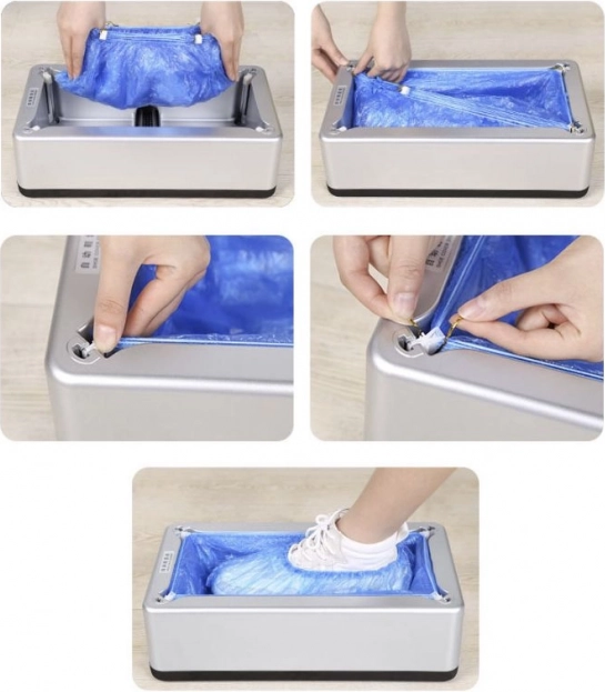 Obsługa jest prosta i efektywna – wystarczy delikatnie włożyć stopę do dozownika. Dzięki automatycznemu mechanizmowi zwalniającemu ochraniacz szybko i bez dotykania rękami zostaje założony. Produkt pomaga utrzymać czystość i higienę podłóg.