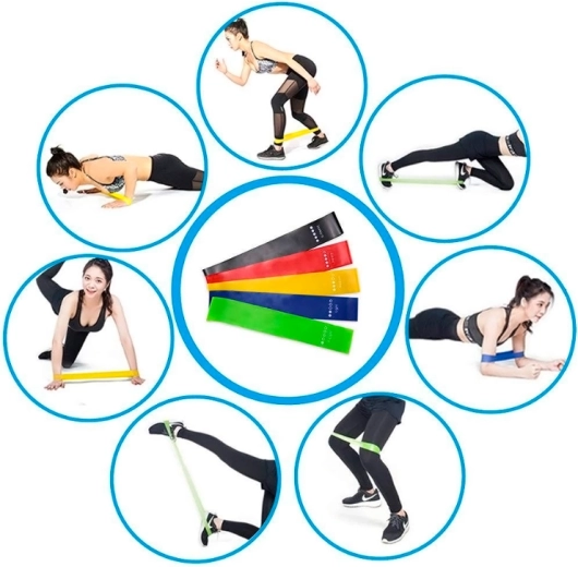 Zestaw zawiera 5 gum z kolorowym oznaczeniem oporu – idealnych do wzmacniania nóg, pośladków, ramion i pleców oraz do aktywacji przed treningiem.