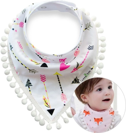 Urocza dziecięca chustka z pomponami to świetny dodatek na szyję, który dobrze sprawdzi się też jako śliniak podczas ząbkowania malucha. Wygodne zapięcie na napy nie uciska dziecka, a do dyspozycji jest także regulowany brzeg.