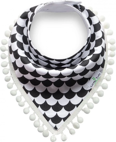 Dziecięca chustka z pomponami – biało‑czarny wzór