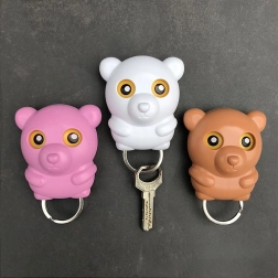 Wieszak na klucze, idealny do przedpokoju, gdzie po powrocie do domu wygodnie odwiesisz klucze. Po zawieszeniu kluczy miś otwiera oczy, aby nad nimi czuwać. Dzięki montażowi wieszaka tuż przy wyjściu już nigdy nie zapomnisz kluczy – otwarte oczy misia z pewnością ci o nich przypomną.