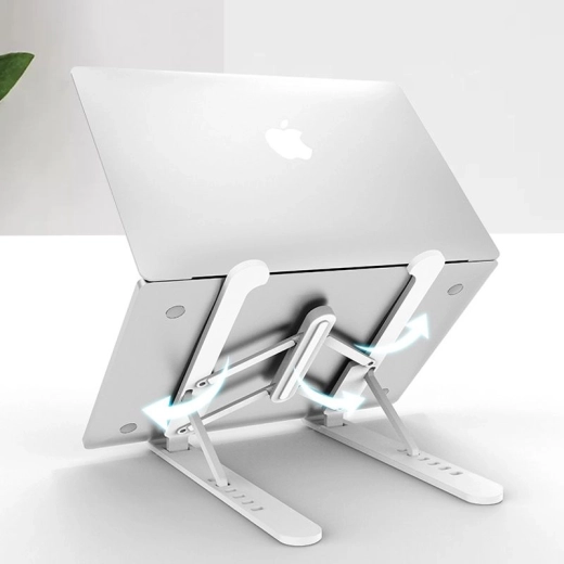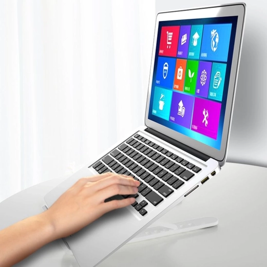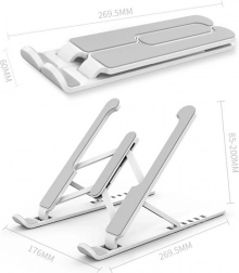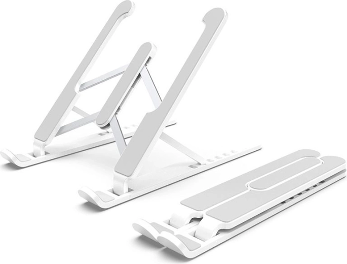 Praktyczny składany stojak na laptop zapewnia prawidłową ergonomię pracy i pomaga utrzymać właściwą postawę ciała. Dzięki swojej konstrukcji wspiera efektywne chłodzenie urządzenia. Idealny do pracy z notebookiem, tabletem, smartfonem lub książkami.