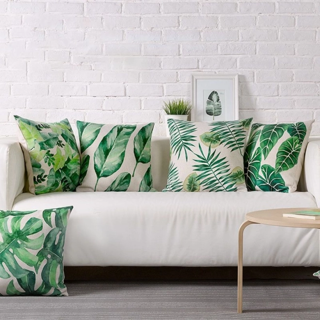 Botaniczny wzór w odcieniach zieleni dodaje wnętrzu świeżości i lekkości, idealny do nowoczesnego i boho stylu.