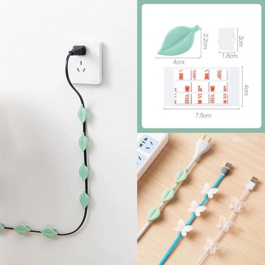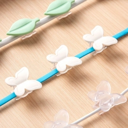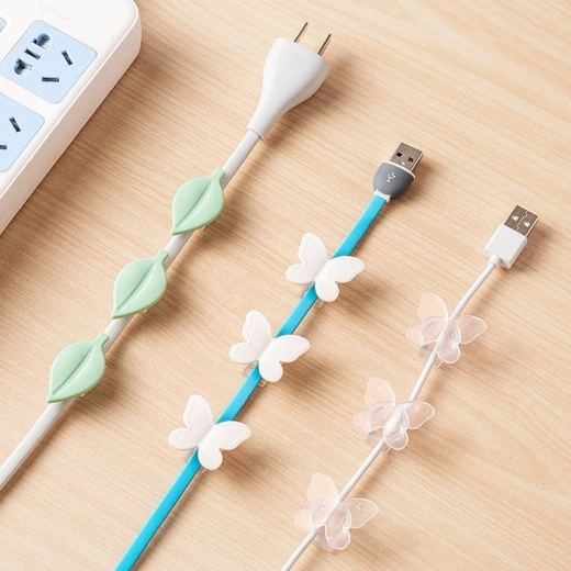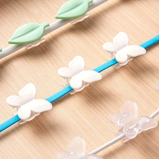 Dekoracyjny uchwyt pomaga utrzymać kable i przewody w jednym miejscu. Doskonale sprawdzi się przyklejony w miejscach takich jak ściana, stolik nocny, szafka pod telewizor, biurko itp. Uchwyt do kabli i przewodów można zamocować praktycznie na każdej powierzchni. Produkt ma oryginalny design – ma kształt motyla. Uchwyt ma płaskie wycięcie, które jest odpowiednie dla większości kabli i przewodów dostępnych na rynku.