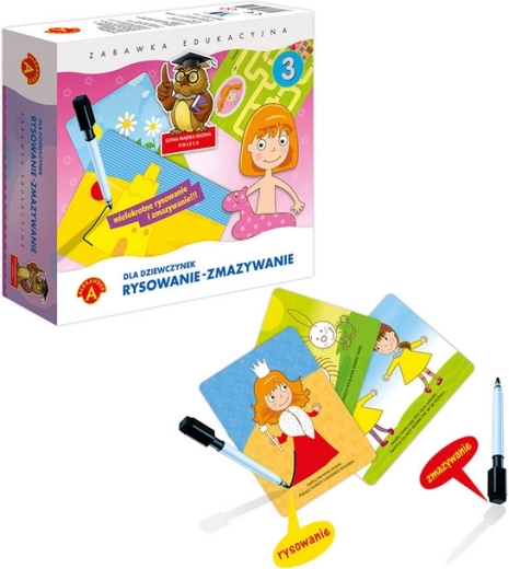 Zanim dziecko nauczy się pisać, musi wykonać szereg ćwiczeń, aby przygotować się i wyćwiczyć prawidłowy chwyt. Zestaw zawiera 28 plansz z aktywnościami o tematyce związanej ze światem dziewczynek. Na wszystkich tablicach można pisać i rysować dołączonymi zmazywalnymi pisakami. Każdy rysunek można łatwo zetrzeć i narysować ponownie. Dzięki temu można poprawiać błędy i używać tablic wielokrotnie.