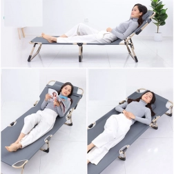 Praktyczne i wygodne składane łóżko do biura, domu i na kemping. Oferuje stabilną stalową konstrukcję, 4-stopniową regulację zagłówka oraz trwałe i oddychające poszycie z tkaniny Oxford. Dzięki kompaktowym wymiarom po złożeniu łatwo je przenosić i przechowywać, a antypoślizgowe stopki zapewniają bezpieczne użytkowanie na różnych powierzchniach.