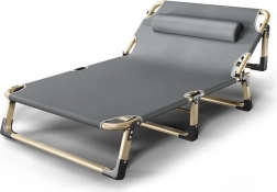 Regulowany zagłówek z 4 stopniami ustawienia umożliwia komfortowe czytanie, relaks i sen. Dzięki 8 antypoślizgowym stopkom łóżko jest stabilne na różnych podłożach. Po złożeniu ma kompaktowe wymiary, więc z łatwością schowasz je do szafy, samochodu czy biura.
