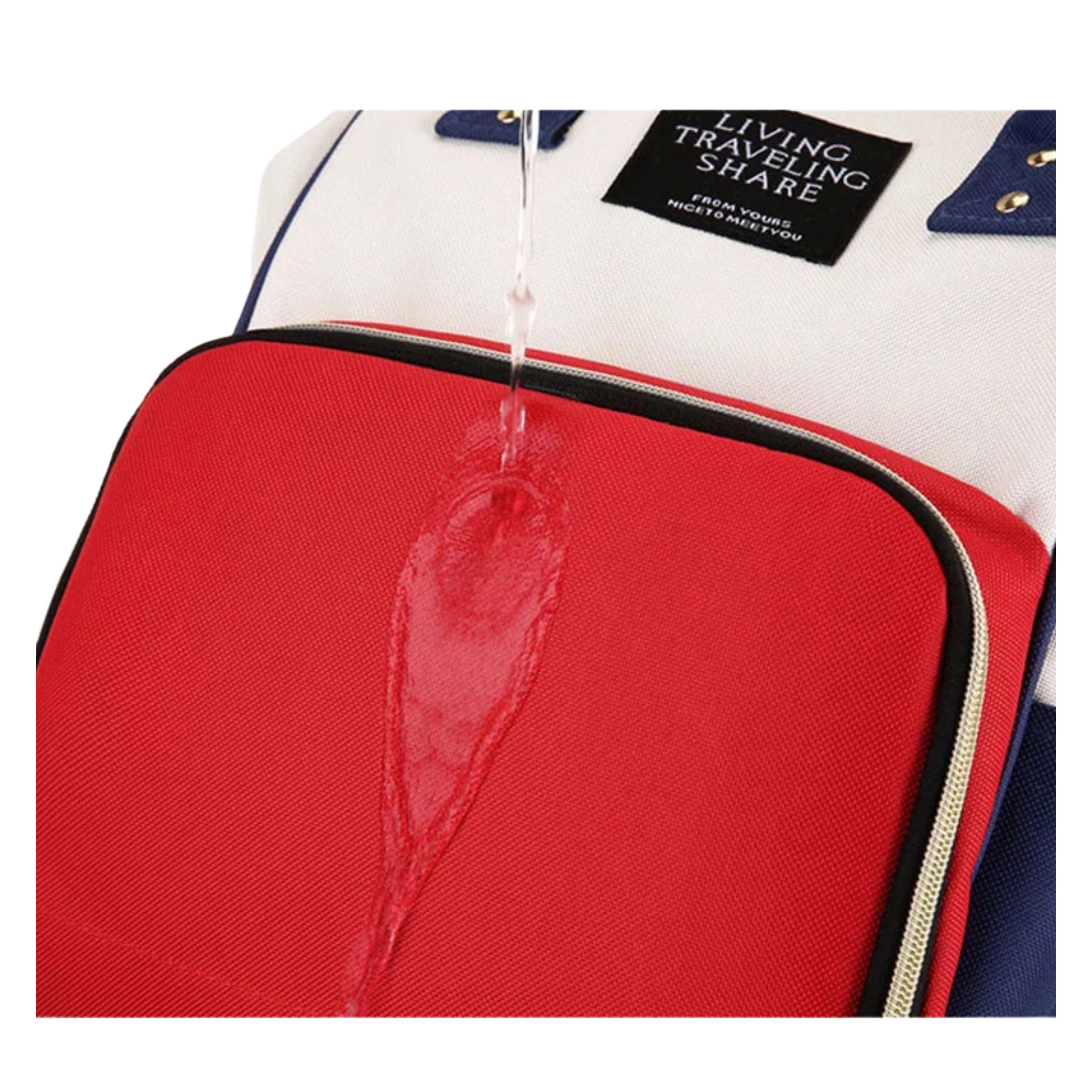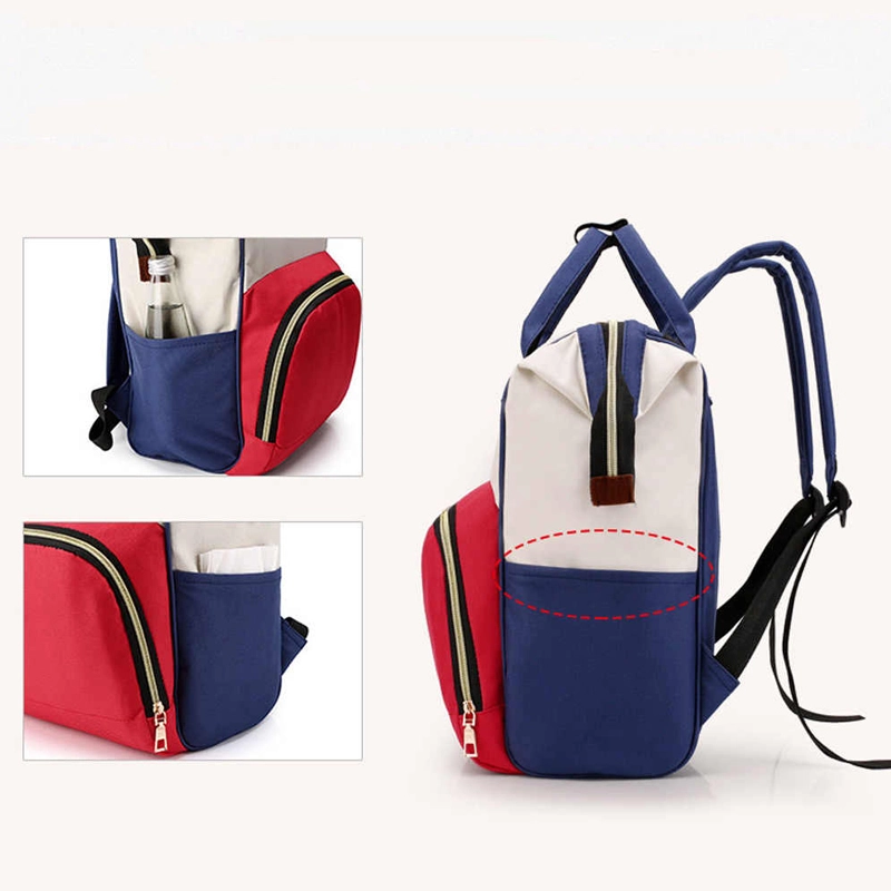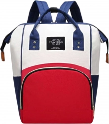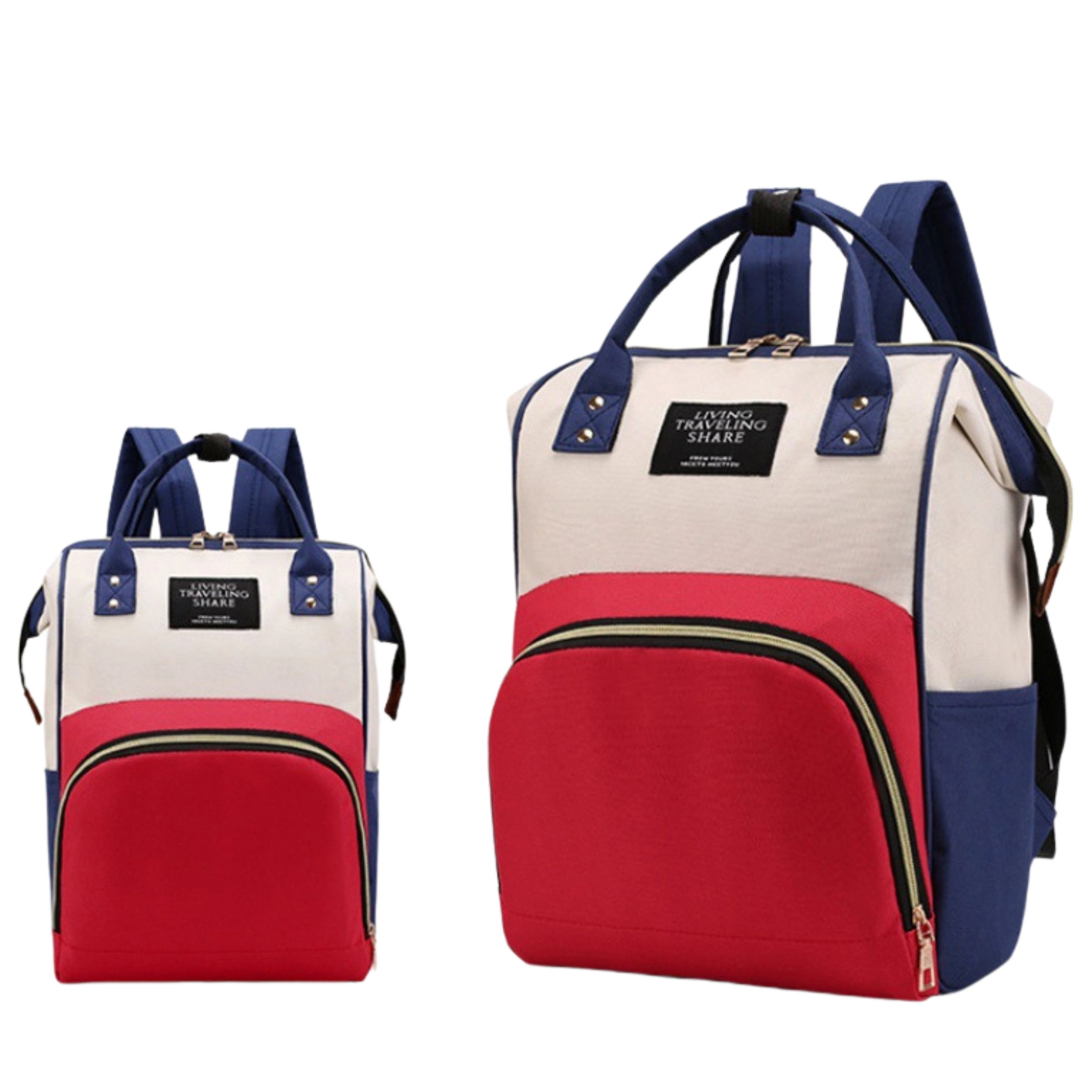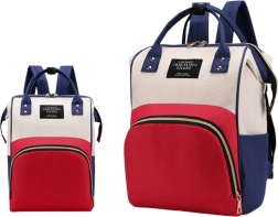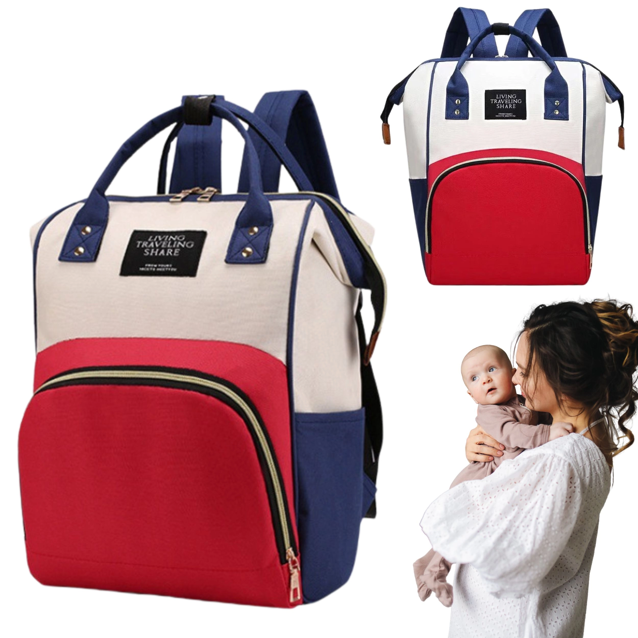 Stylowy i praktyczny plecak dla mam w barwach trójkolorowych łączy wygodę i organizację na co dzień. Oferuje termiczne kieszenie na butelki, szeroką główną komorę z licznymi kieszeniami, boczne kieszenie na niezbędniki oraz możliwość noszenia w ręce, na plecach i przypięcia do wózka.