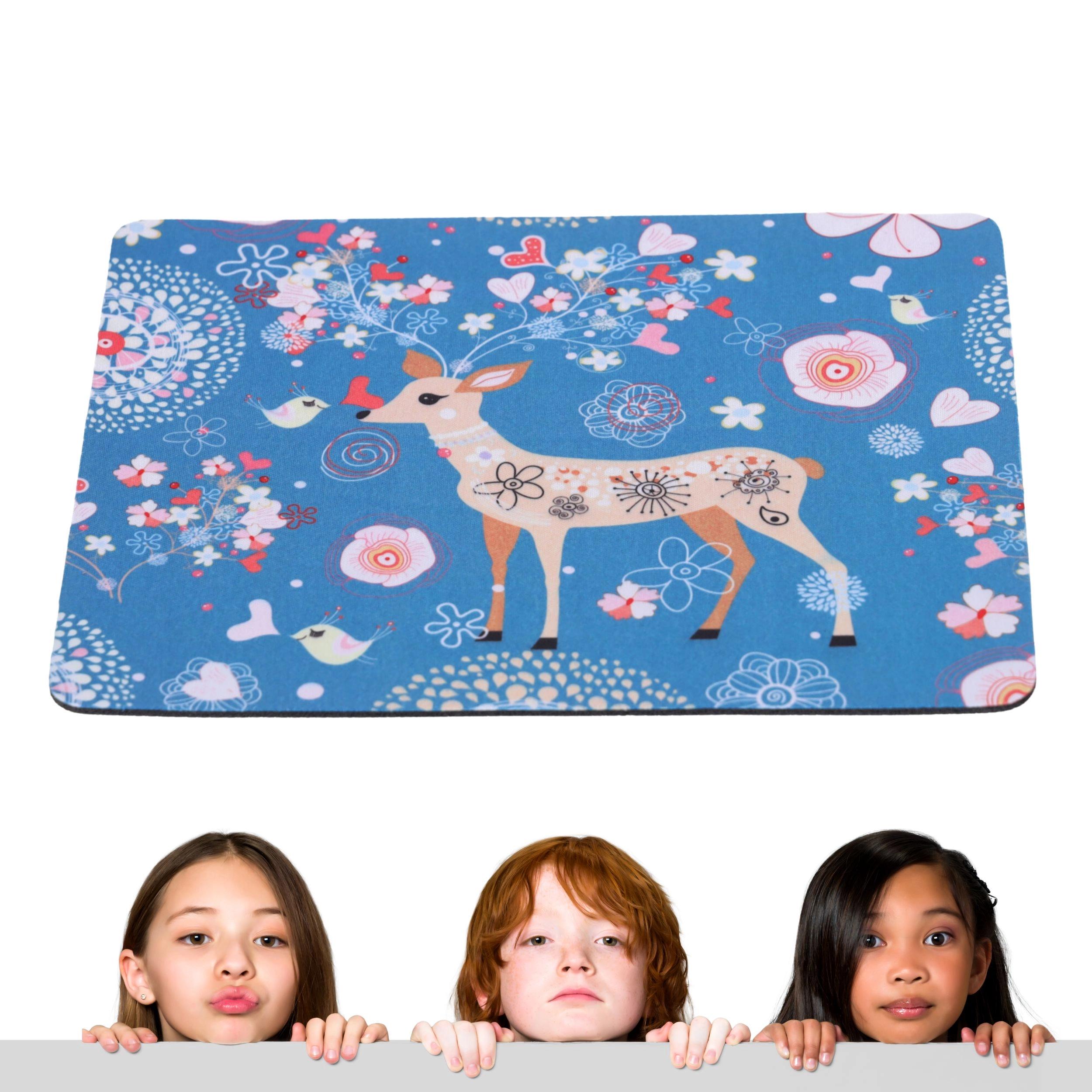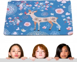 Ta dekoracyjna podkładka pod mysz z delikatnym niebieskim tłem oraz radosnym motywem sarenki, ptaków i kwiatów upiększy każde biurko. Tekstylna powierzchnia zapewnia płynny ruch myszy i wysoką precyzję kursora, a gumowy spód utrzymuje podkładkę pewnie na miejscu.