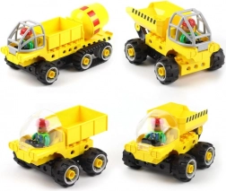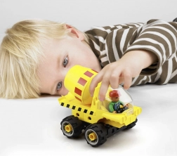 Jeden zestaw, pięć możliwości: betoniarki i wywrotki w różnych wariantach dla nieskończonych scenariuszy zabawy.