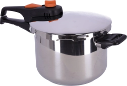 Dzięki dwóm ustawieniom ciśnienia (0,6 / 0,9 bara) z łatwością dopasujesz przygotowanie do różnych składników – od roślin strączkowych, przez mięso, po warzywa. Silikonowa uszczelka niezawodnie utrzymuje ciśnienie, ergonomiczne uchwyty wygodnie leżą w dłoni, a garnek jest kompatybilny ze wszystkimi źródłami ciepła, w tym z indukcją.