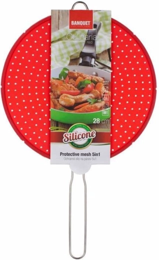 Przedstawiamy silikonowe ochronne sitko na patelnię CULINARIA, idealne do każdej kuchni. Jego perforowany design skutecznie zapobiega pryskaniu oleju, jednocześnie umożliwiając ucieczkę pary, co zapewnia czystość i bezpieczeństwo podczas gotowania. Sitko jest wyposażone w metalowy uchwyt ułatwiający manipulację.