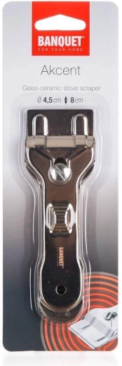 Skrobak do płyty szklano-ceramicznej AKCENT to znakomity pomocnik w kuchni, służący do bezpiecznego i delikatnego usuwania przypalonych resztek jedzenia, bez ryzyka porysowania powierzchni płyty.