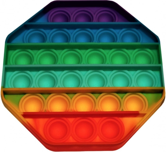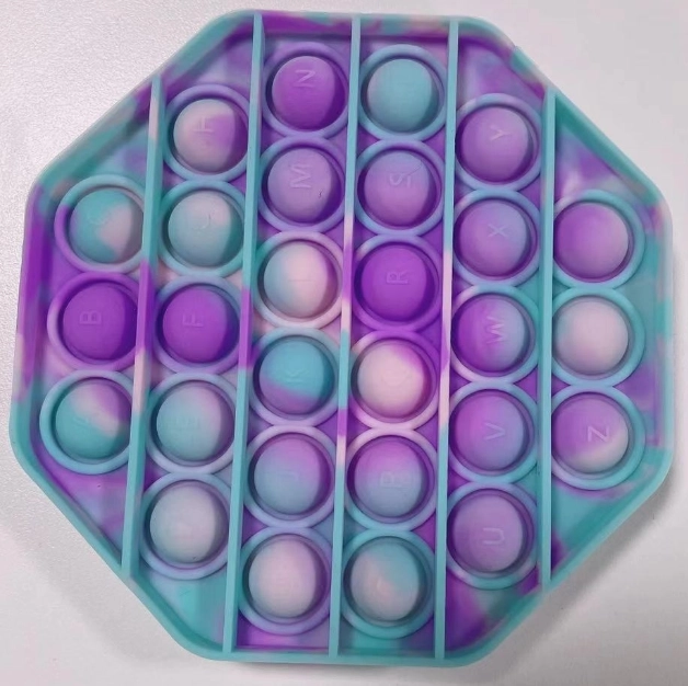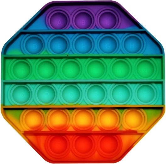Ten kolorowy ośmiokątny Pop It wiernie naśladuje pstrykanie folii bąbelkowej. Wykonany z wysokiej jakości, wytrzymałego silikonu, dobrze leży w dłoni i jest wodoodporny, dzięki czemu zapewnia zabawę w domu, na zewnątrz i w podróży.