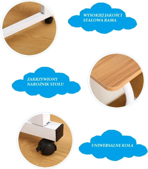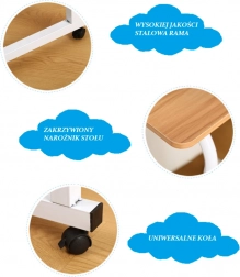 - Blokady kółek zapobiegające przesuwaniu się stolika,