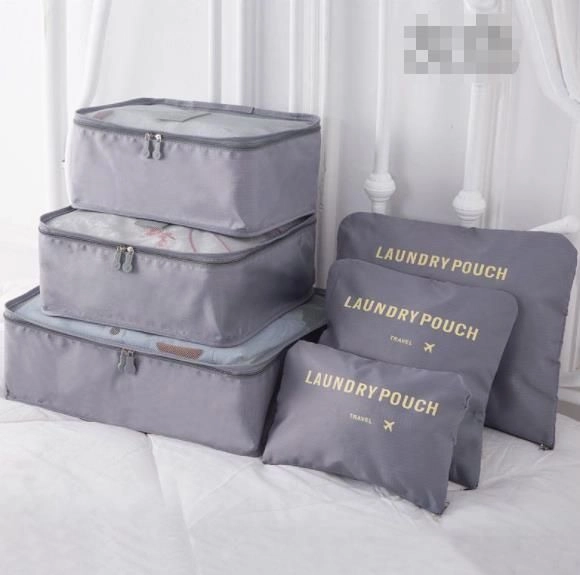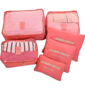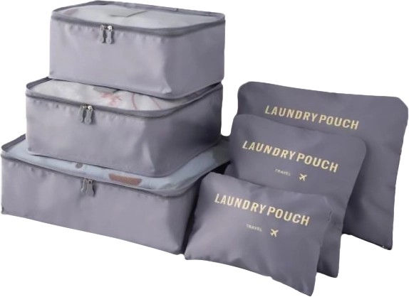 Sześć praktycznych elementów w różnych rozmiarach na ubrania, bieliznę, akcesoria i kosmetyki. Idealny w podróży i do domowej organizacji.
