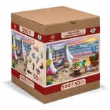 Puzzle zapakowane są w papierowy woreczek i pudełko, całkowicie bez użycia plastiku, co jest przyjazne dla środowiska.
