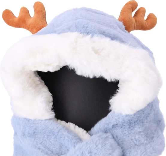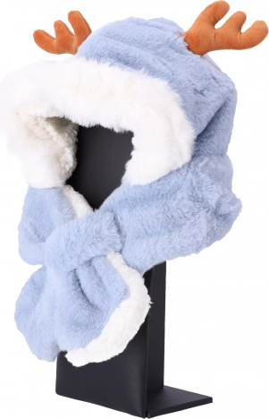 Dziecięca pluszowa czapka z szalikiem dla dzieci w wieku od 1 do 7 lat – jasnoniebieska z jelenimi uszami