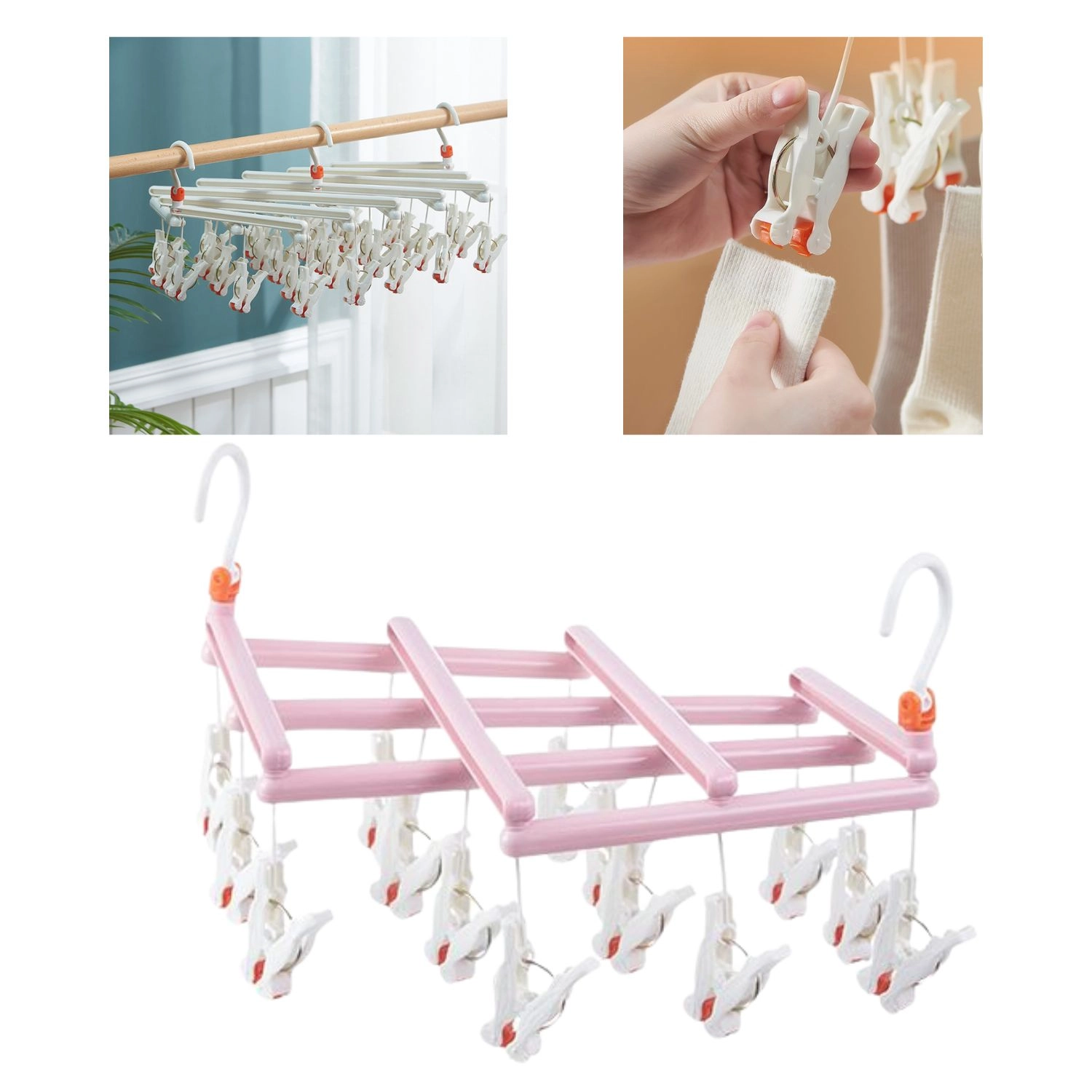 Zachowaj porządek podczas suszenia i wykorzystaj każdy centymetr przestrzeni. Ta różowa suszarka z 14 solidnymi klamerkami umożliwia szybkie i przejrzyste wieszanie mniejszych sztuk odzieży. Obrotowy haczyk pozwala łatwo zawiesić ją na drążku, sznurku, balkonie czy większej suszarce, a składany design ułatwia przechowywanie i przenoszenie.