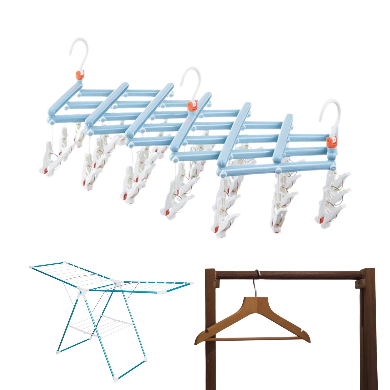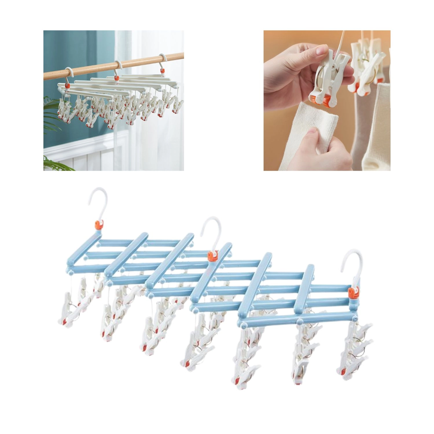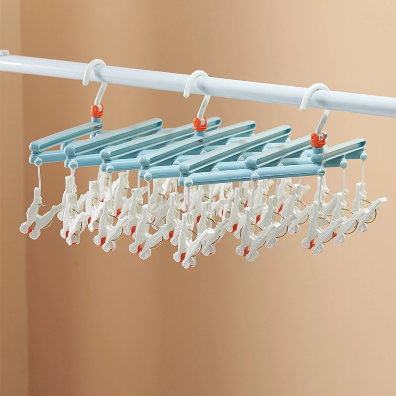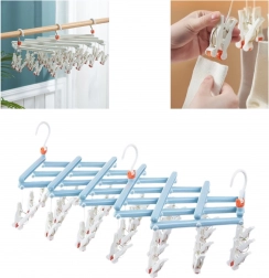 Praktyczny składany suszarka na pranie z 29 klipsami jest idealna do skarpet, bielizny i drobnych elementów. Lekka i wytrzymała plastikowa konstrukcja, obrotowy hak z blokadą oraz kompaktowe składanie oszczędzają miejsce w domu, na balkonie i w podróży.