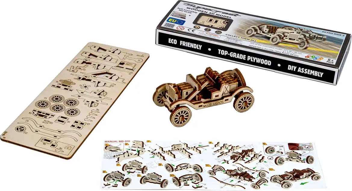 Model Retro Ride 2 łatwo się składa, więc jest idealny zarówno dla początkujących i świetnym startem nowego hobby, jak i dla zaawansowanych miłośników drewnianych modeli.