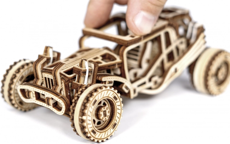 Ten realistyczny model buggy w skali 1:32 łączy przemyślany design i funkcje mechaniczne, które zachwycą zarówno podczas budowy, jak i jazdy. Dzięki laserowo wycinanym elementom z brzozowej sklejki wszystko idealnie do siebie pasuje, a efektem jest imponujący kolekcjonerski eksponat oraz edukacyjna układanka.