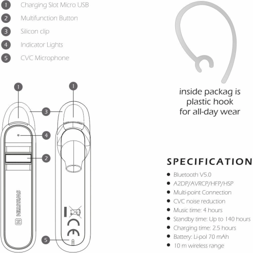 Słuchawka SWISSTEN CALLER waży zaledwie 7 gramów i wytrzymuje do 4 godzin rozmów.