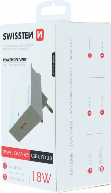 Zacznij ładować swoje urządzenia szybko i efektywnie za pomocą ładowarki Swissten, która zapewnia 18W mocy wyjściowej dzięki technologii Power Delivery 3.0. Jest idealna dla urządzeń mobilnych, takich jak iPhone i inne kompatybilne urządzenia.