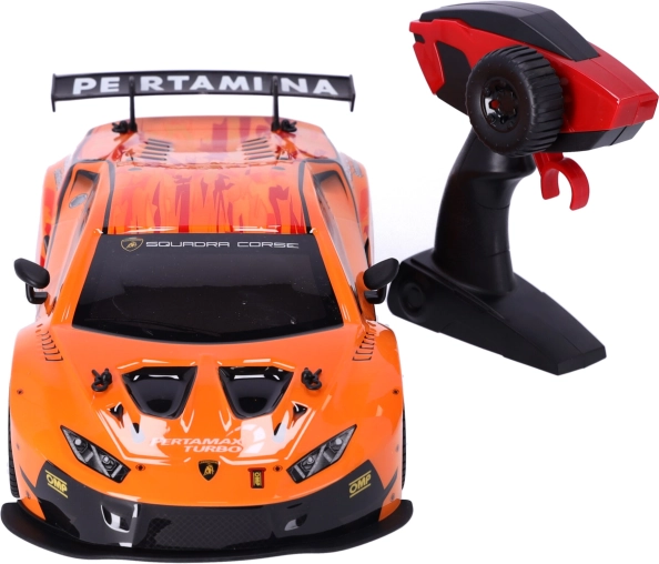 Spełnij wyścigowe marzenia z licencjonowanym modelem LAMBORGHINI HURACÁN GT3 w skali 1:12. Dzięki technologii 2,4 GHz sterowanie jest płynne i bez zakłóceń, auto jeździ do przodu/do tyłu oraz w lewo/w prawo, osiąga prędkość 12–15 km/h i ma zasięg aż 40 m. Idealny prezent dla dzieci od 6 lat oraz początkujących miłośników RC.