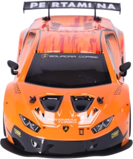 Ten dopracowany model RC zachwyca realistycznym wyglądem, oficjalną licencją i świetnymi właściwościami jezdnymi. Solidna konstrukcja i precyzyjne wykonanie nadwozia wiernie odwzorowują wyścigowy samochód HURACÁN GT3.