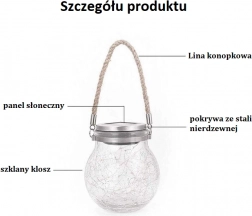 Szklany lampion świetnie sprawdzi się przy ogrodzeniu i na balkonie. Solarny lampion ładuje się za pomocą panelu słonecznego. Dzięki szybkiemu i łatwemu montażowi można go zainstalować także w nieoświetlonych miejscach. Lampa posiada wbudowany czujnik zmierzchu, który włącza się nocą i ładuje w ciągu dnia.