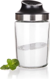 Szklana cukiernica dozująca CLIFF o pojemności 250 ml, w nowoczesnym kształcie, z wieczkiem ze stali nierdzewnej (stal nierdzewna 18/0). Idealna do cukru pudru lub kakao podczas podawania słodkich deserów lub ulubionych napojów kawowych.