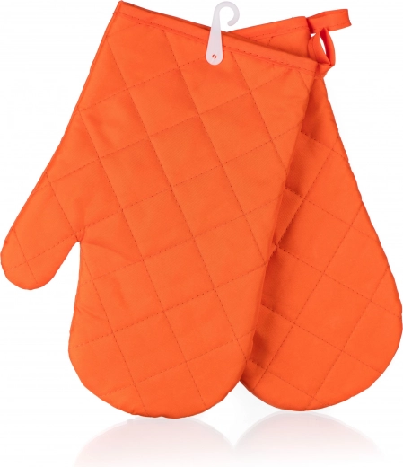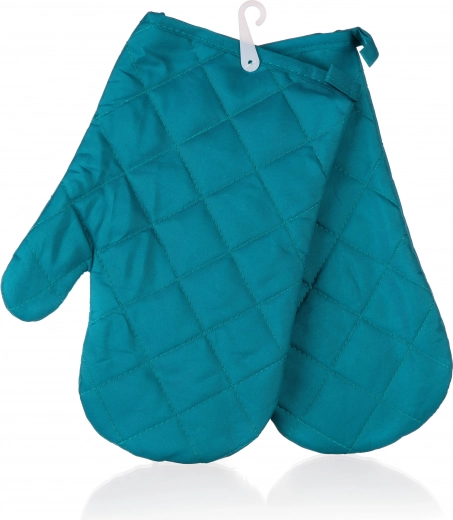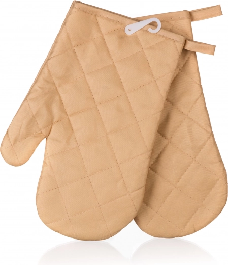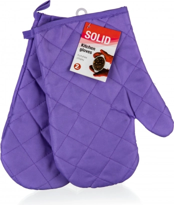 Zestaw 2 rękawic kuchennych SOLID wykonany jest w 100% z poliestru, jakość materiału: 55 g/m2, jednokolorowe wykończenie z lamówkami.