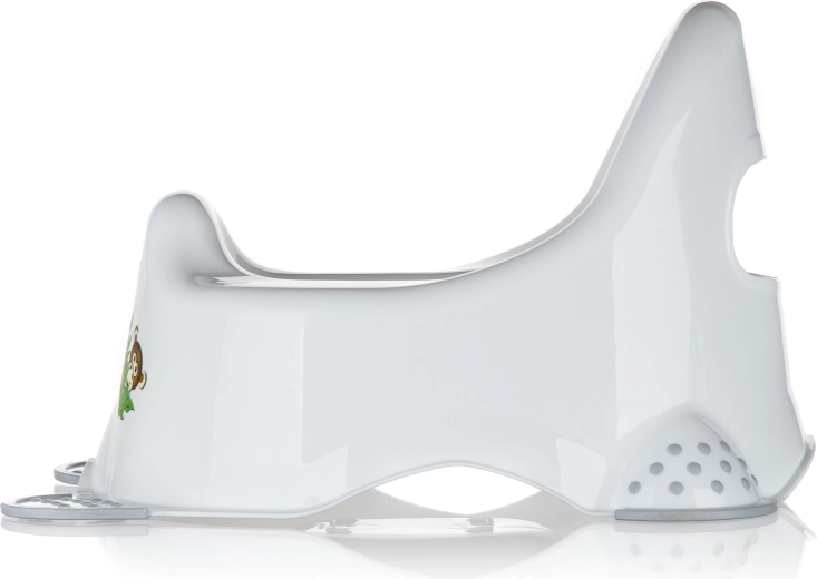 Szeroka podstawa i antypoślizgowe podkładki utrzymują nocnik stabilnie na miejscu nawet na gładkich podłogach, dzięki czemu dzieci czują się pewnie i bezpiecznie.