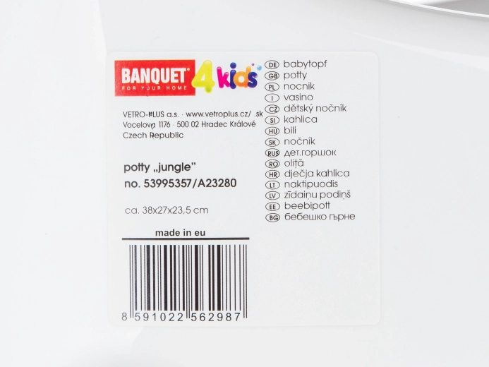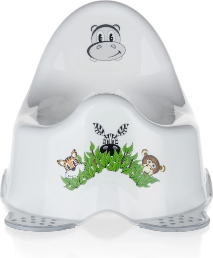 Praktyczna, podwyższona część środkowa minimalizuje ryzyko niechcianego rozlania. Lekka, plastikowa konstrukcja ułatwia przenoszenie, a wesołe zwierzątka z motywem Jungle zachęcają dzieci do korzystania z nocnika.