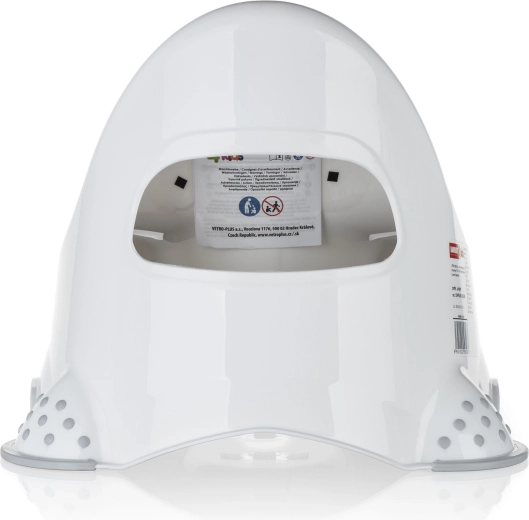Anatomiczny kształt siedziska oraz wysokie oparcie wspierają prawidłową postawę ciała i zwiększają komfort podczas nauki korzystania z nocnika.