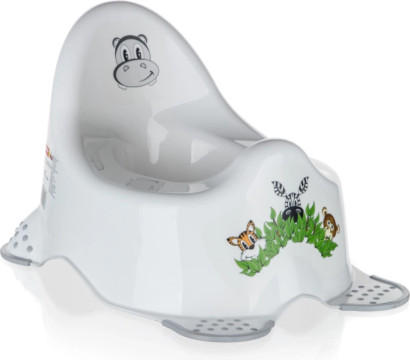 Dziecięcy nocnik Jungle w białym kolorze został zaprojektowany z myślą o bezpiecznej i wygodnej nauce korzystania z toalety. Dzięki szerokiej podstawie z elementami antypoślizgowymi jest bardzo stabilny, anatomicznie ukształtowane siedzisko i wysokie oparcie zapewniają właściwe podparcie i komfort nawet przy dłuższym siedzeniu. Gładka, higieniczna powierzchnia jest łatwa w utrzymaniu czystości.